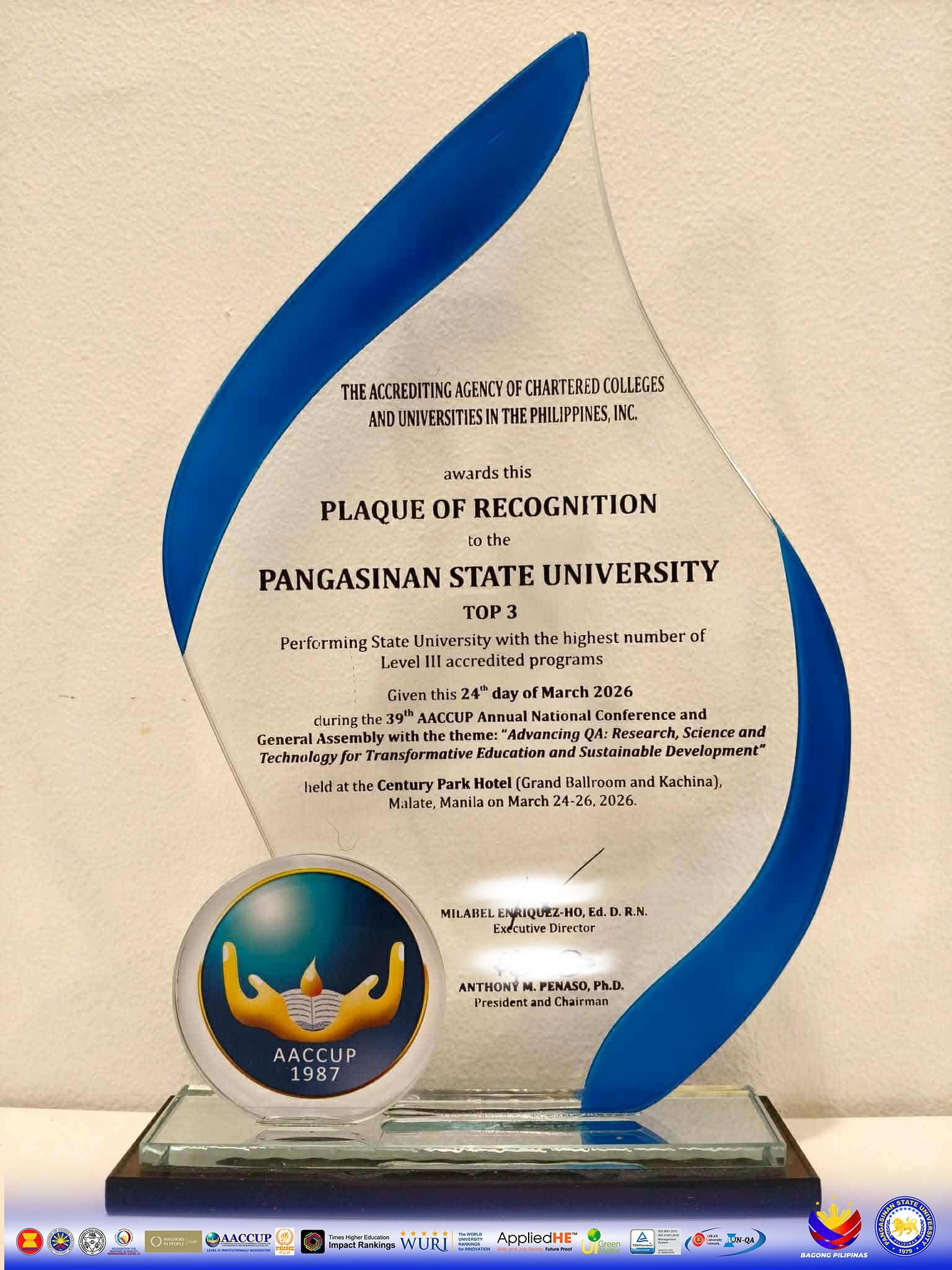 We are beyond proud to announce that PSU has officially clinched the prestigious rank of ๐ง๐ผ๐ฝ ๐ฏ ๐ฃ๐ฒ๐ฟ๐ณ๐ผ๐ฟ๐บ๐ถ๐ป๐ด ๐ฆ๐๐ฎ๐๐ฒ ๐จ๐ป๐ถ๐๐ฒ๐ฟ๐๐ถ๐๐ ๐ถ๐ป ๐๐ต๐ฒ ๐ฃ๐ต๐ถ๐น๐ถ๐ฝ๐ฝ๐ถ๐ป๐ฒ๐ for having the highest number of Level III accredited programs in 2025. This monumental achievement cements our position as a powerhouse of quality assurance and a beacon of higher learning in the country. The prestigious Plaque of Recognition was conferred by the Accrediting Agency of Chartered Colleges and Universities in the Philippines (AACCUP), Inc. on March 24, 2026, during the grand opening ceremonies of the 39th AACCUP Annual National Conference and General Assembly at the iconic Century Park Hotel, Manila. The award, which celebrates PSU’s remarkable accreditation milestones throughout 2025, was presented by AACCUP Executive Director Dr. Milabel Enriquez-Ho, President/Chairman Dr. Anthony M. Penaso, and the distinguished members of the AACCUP Board of Trustees.