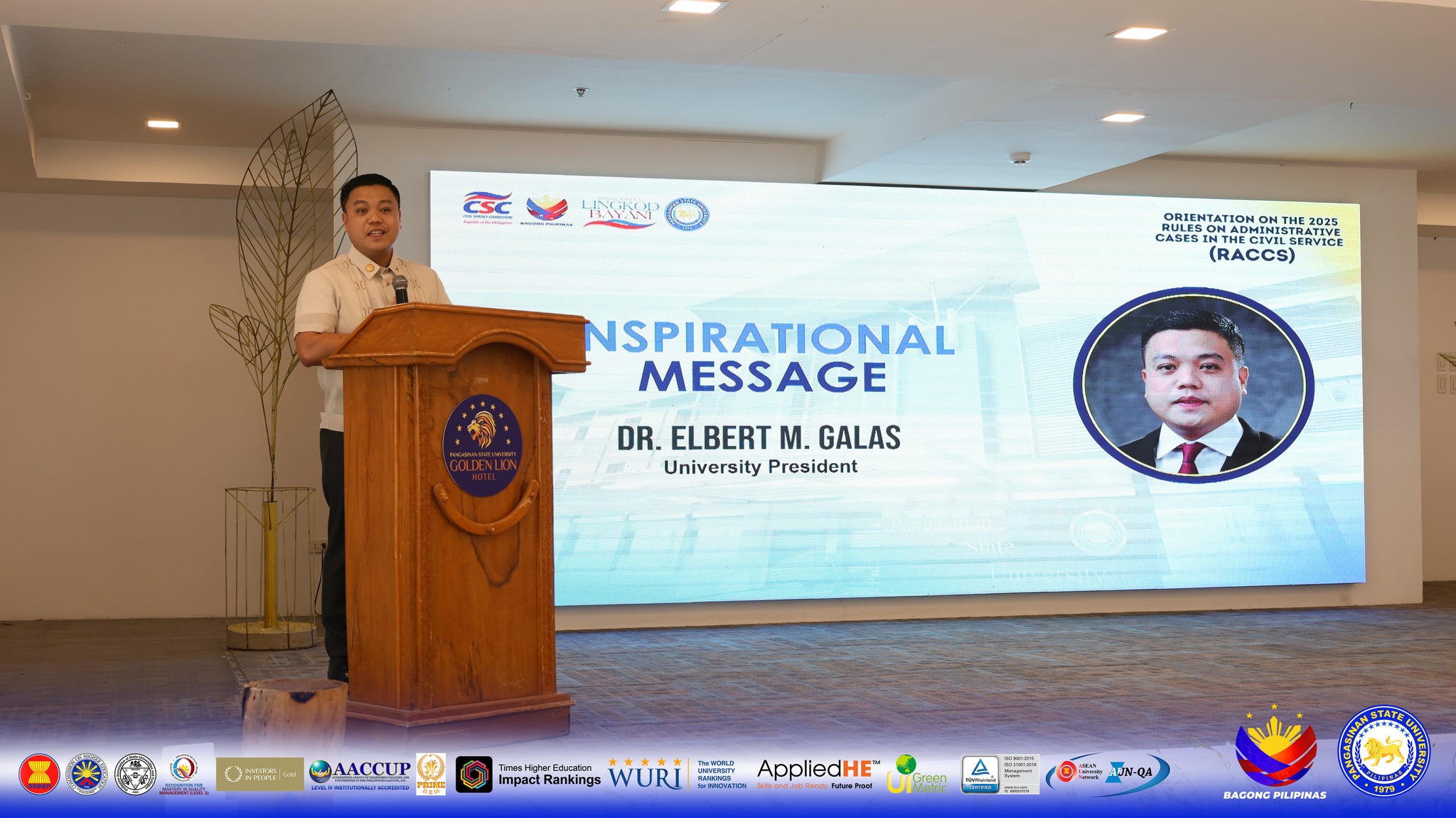 These words from University President Dr. Elbert M. Galas set the tone for Day 1 of the “Orientation on the 2025 Rules on Administrative Cases in the Civil Service (RACCS)” held April 14 at the ASEANA hall of PSU Golden Lion Hotel. The message was not just inspirational – it was a call to action, urging the university to armor its workforce with knowledge and preparation.