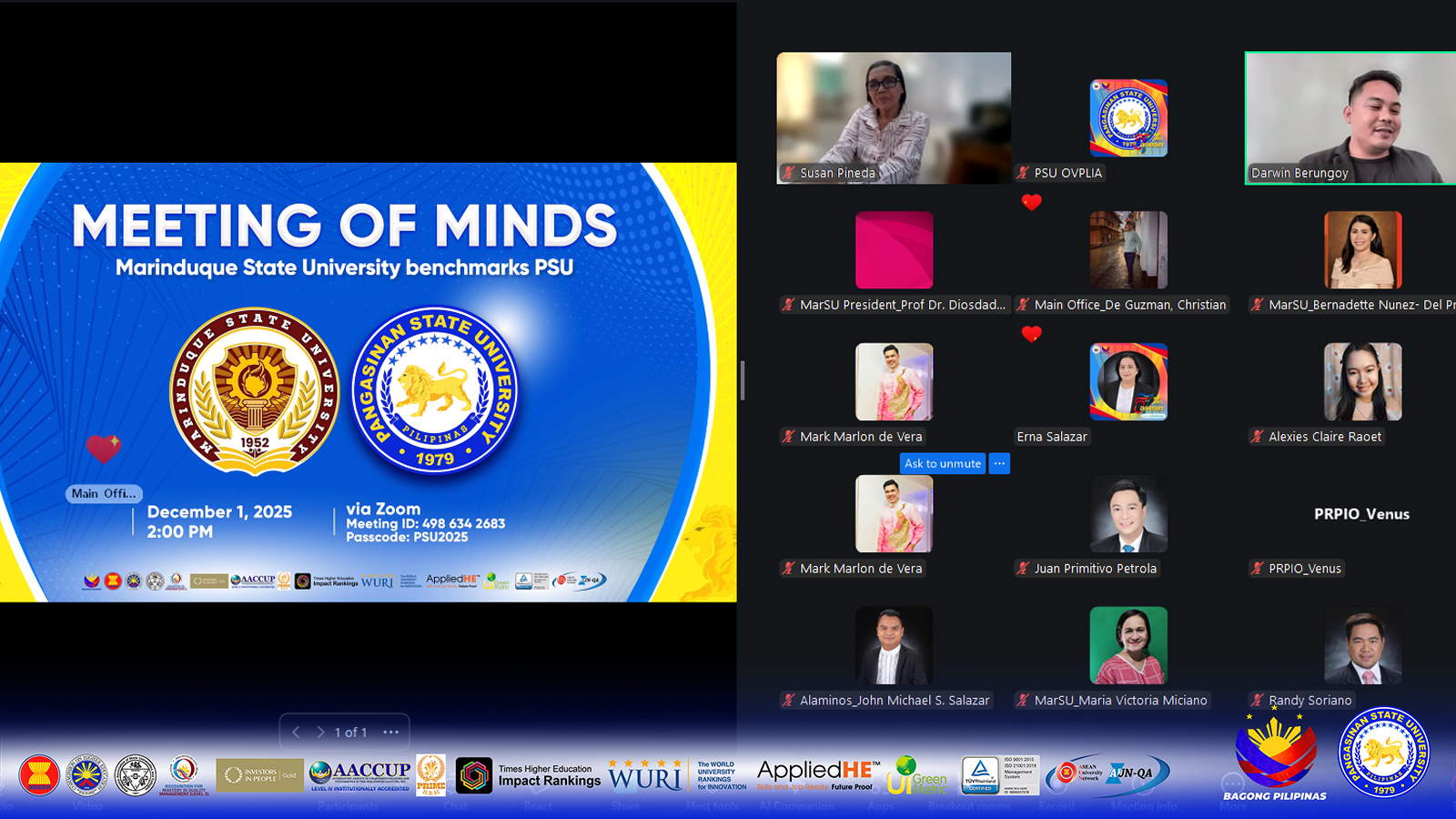 With teacher education as one of the flagship programs of Pangasinan State University, the university shared practices with Marinduque State University, December 1, 2025 via online platform.