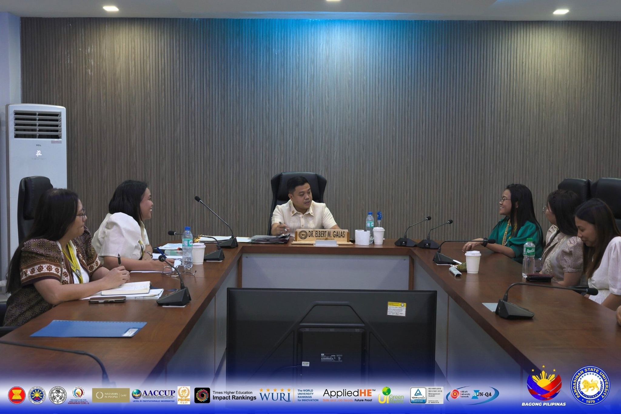 Faculty members who have recently transitioned through a change of status from temporary to permanent at Pangasinan State University paid a courtesy call on ๐—จ๐—ป๐—ถ๐˜ƒ๐—ฒ๐—ฟ๐˜€๐—ถ๐˜๐˜† ๐—ฃ๐—ฟ๐—ฒ๐˜€๐—ถ๐—ฑ๐—ฒ๐—ป๐˜ ๐——๐—ฟ. ๐—˜๐—น๐—ฏ๐—ฒ๐—ฟ๐˜ ๐— . ๐—š๐—ฎ๐—น๐—ฎ๐˜€ at the Office of the President, Administration Building of the Main Campus in Lingayen, Pangasinan on March 16, 2026.