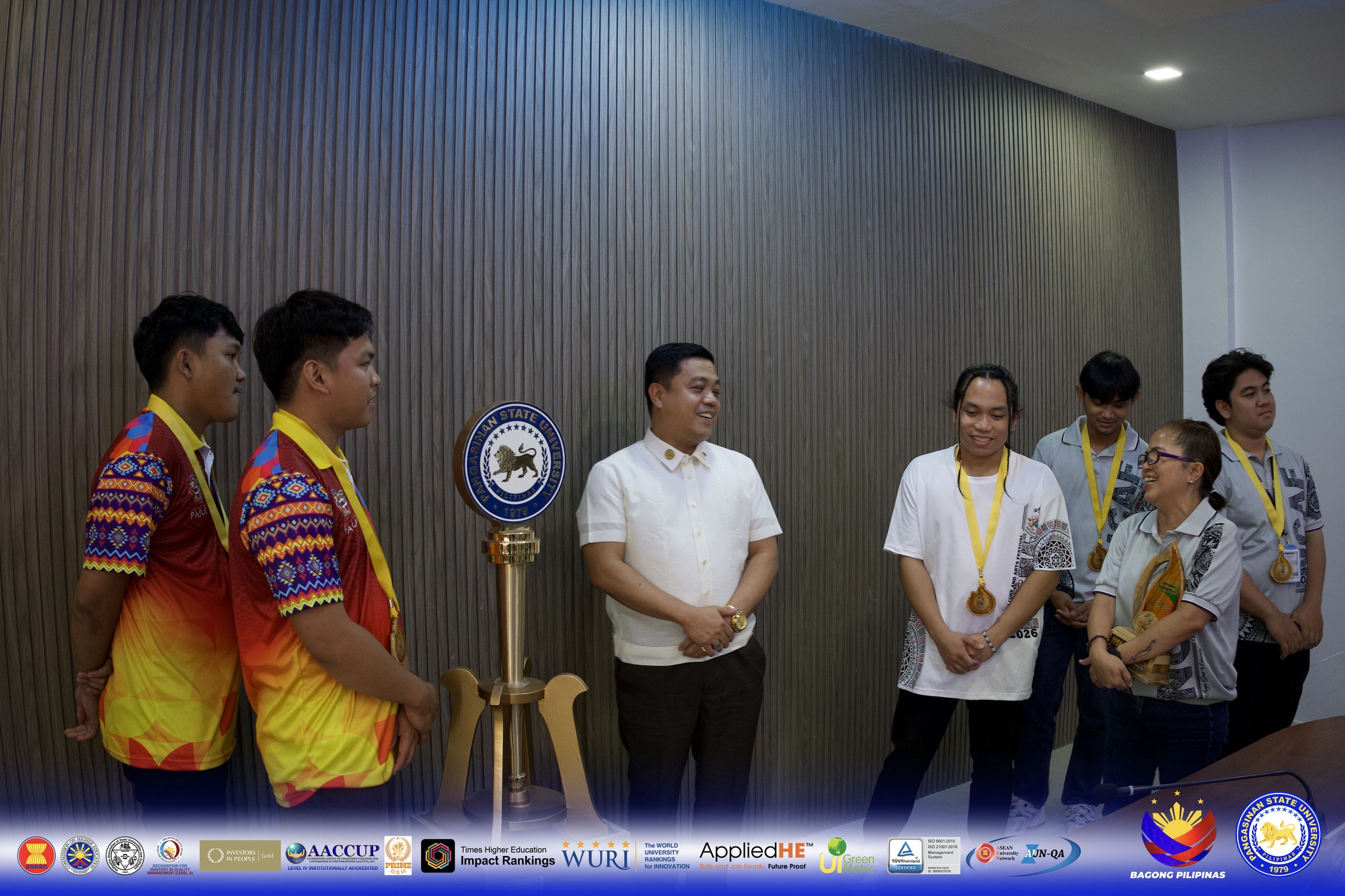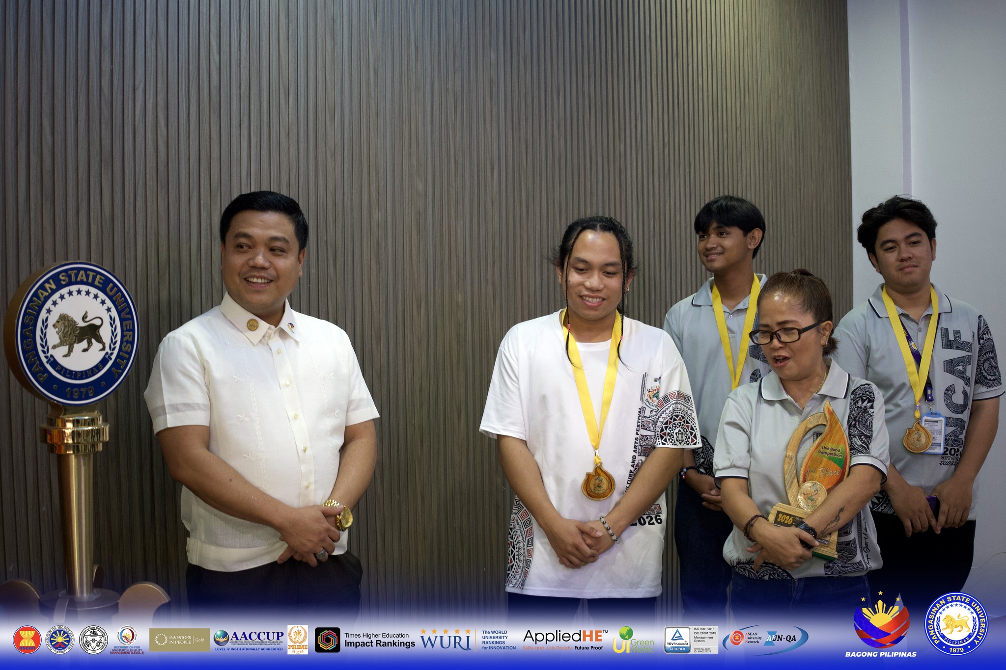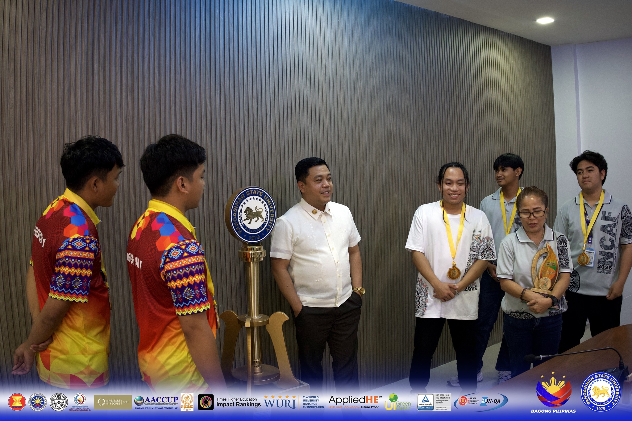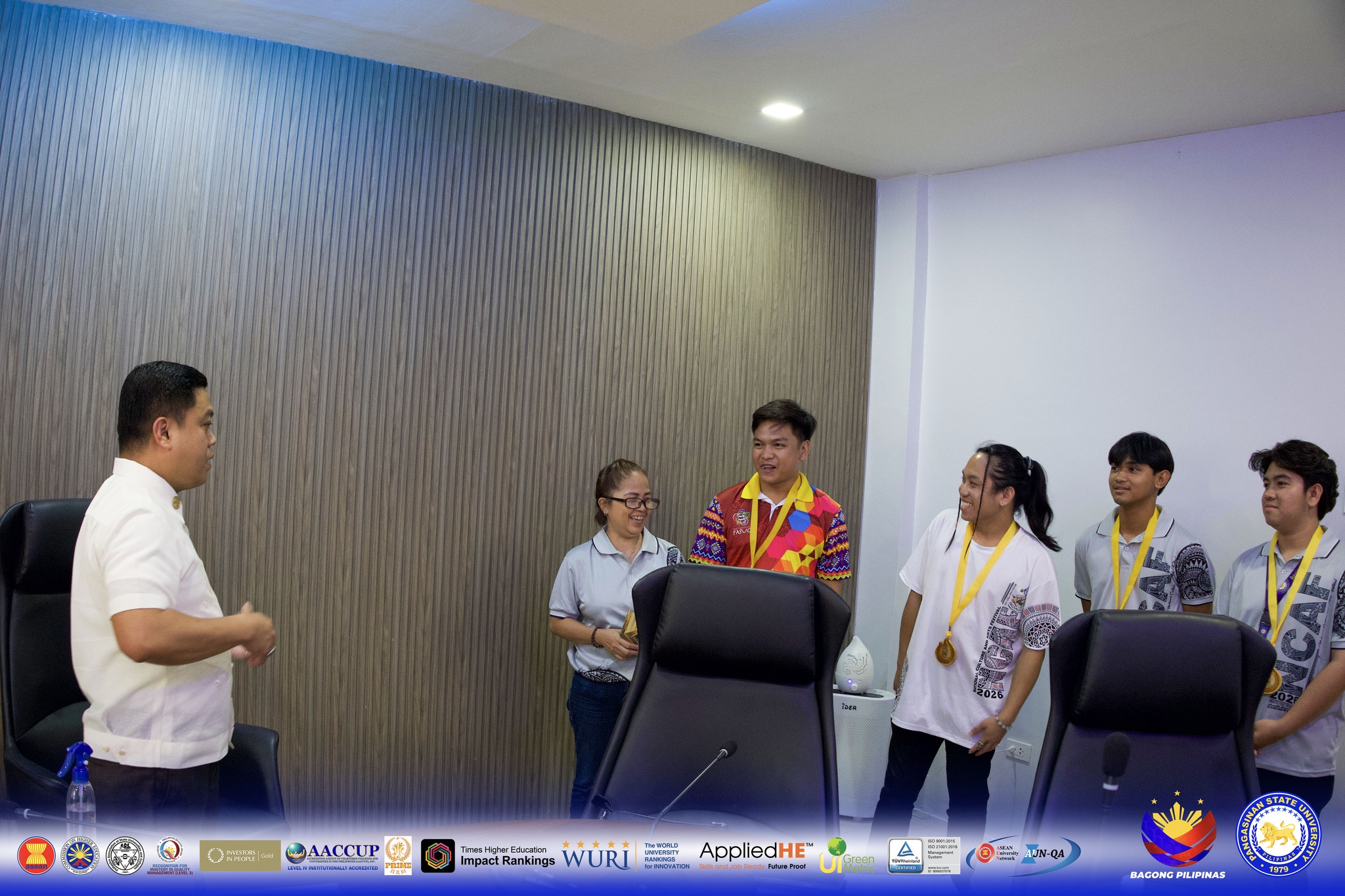 Fresh from their electrifying championship win at the 2026 National Culture and the Arts Festival (NCAF) Live Band Competition in Iloilo, Pangasinan State University’s “First Kicks” band brought the energy of the national stage straight to the Office of the University President—this time, not for competition, but for reflection and recognition.