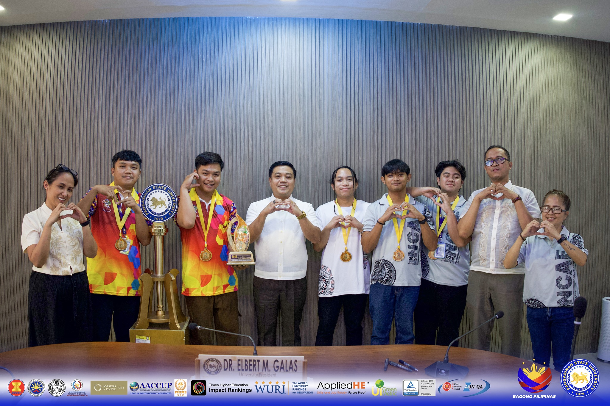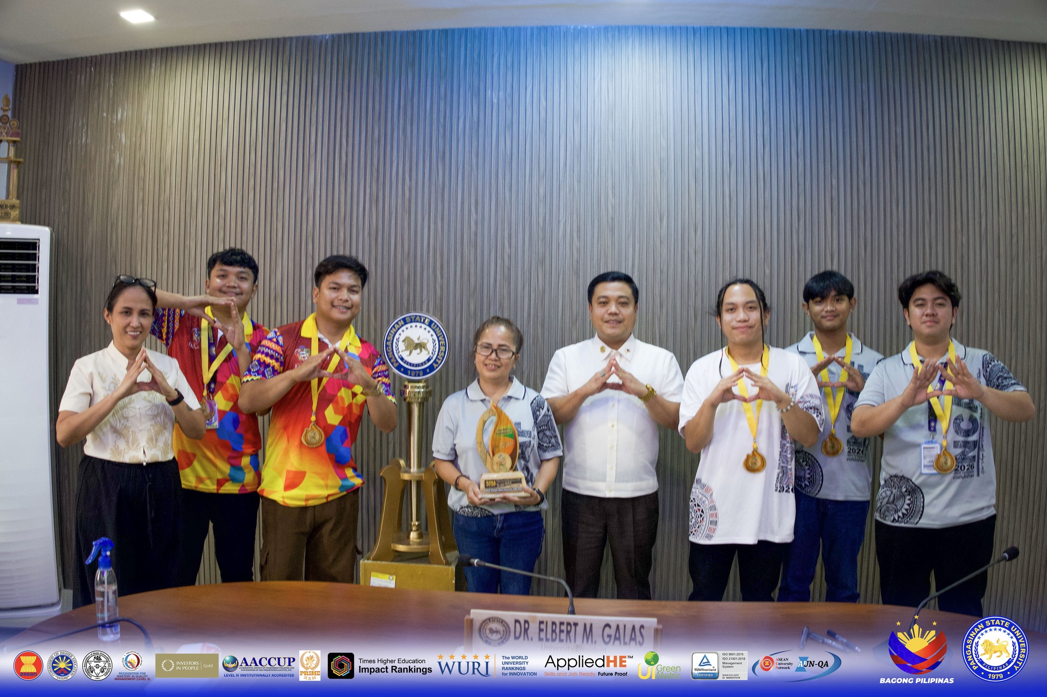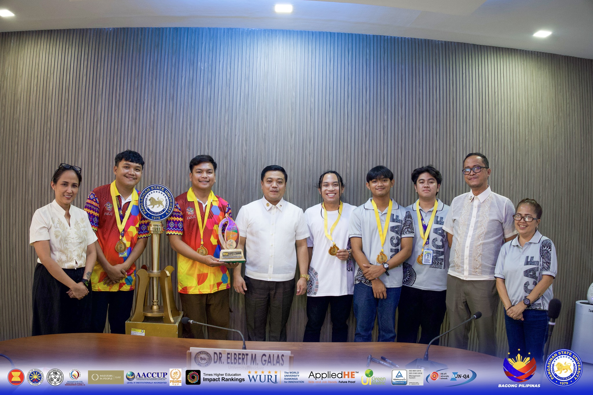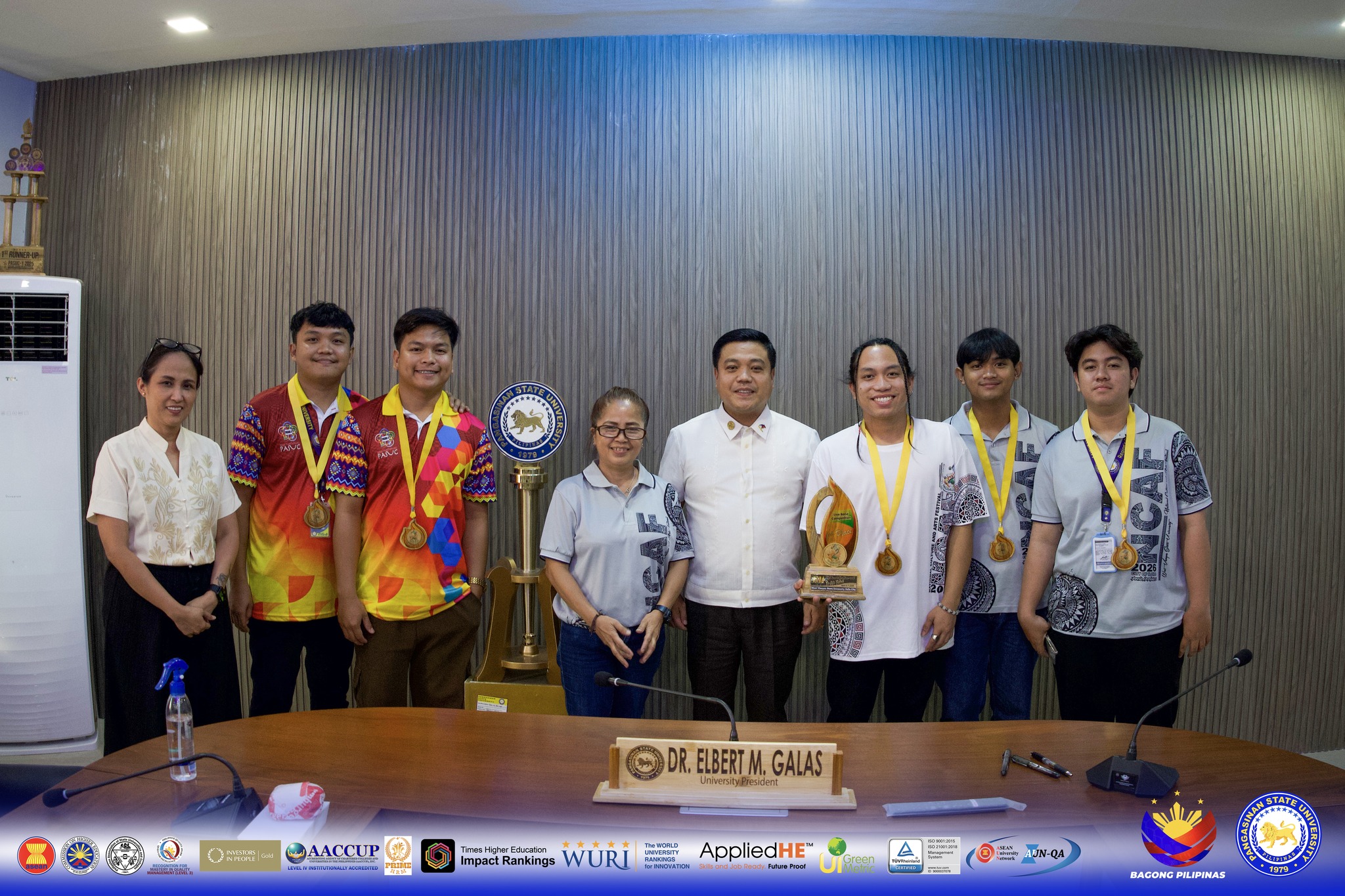 In a moment that felt less like a formal courtesy call and more like a celebration of shared triumph, the national champion band, together with their coach Prof. Mildred S. Ferrer, met with PSU and PASUC-1 President Dr. Elbert M. Galas to recount the journey behind their historic win—the first-ever national live band championship for Pangasinan State University, earned after clinching the regional title that secured their spot to represent PASUC Region I on the national stage.