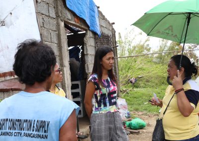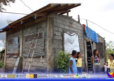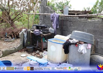 “Pagkatapos po ng bagyo, pinagtagpi-tagpi lang po namin yung mga tolda at tarpaulin para po may masilungan. Yung isang anak ko na may pamilya na nag evacute muna sa development center ng Brgy. [After the typhoon, we just pieced together tarps and tents to have something to shelter us. One of my children, who already has a family, evacuated to the barangay’s development center.]” Biguas stated.