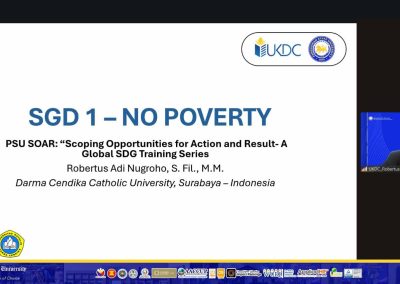Distinguished speakers shared their institutional responses to poverty alleviation. ๐๐ฟ. ๐ฅ๐ฎ๐ณ๐ฎ๐ฒ๐น ๐๐ถ๐บ๐๐ฒ๐ฐ๐ผ ๐ฆ๐ฎ๐๐ด๐ผ, President of Bayambang Polytechnic College, presented the โRebolusyon Laban sa Kahirapanโ program initiated by the Bayambang LGU, while ๐ฃ๐ฟ๐ผ๐ณ. ๐ฅ๐ผ๐ฏ๐ฒ๐ฟ๐๐๐ ๐๐ฑ๐ถ ๐ก๐๐ด๐ฟ๐ผ๐ต๐ผ, ๐ฆ. ๐๐ถ๐น., ๐ .๐ . of Darma Cendika Catholic University in Surabaya discussed practical measures such as scholarship grants and improved sanitation facilities that can be scaled to wider communities.