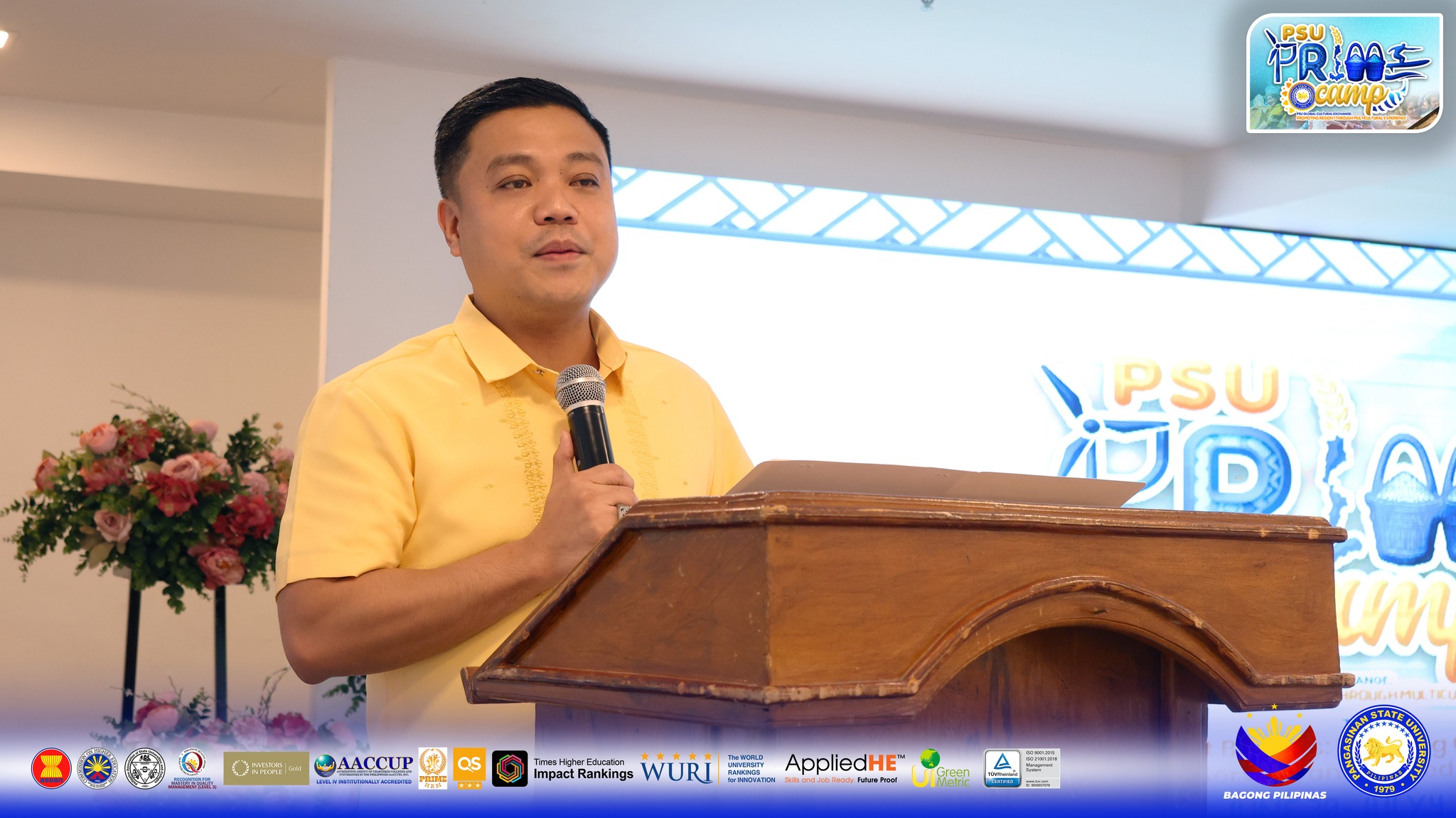In the welcome program, ๐๐ข๐๐ ๐๐ซ๐๐ฌ๐ข๐๐๐ง๐ญ ๐๐ซ. ๐๐๐ง ๐๐ฏ๐๐ง๐ ๐๐ฅ๐ข๐ฌ๐ญ๐ ๐จ๐ ๐ญ๐ก๐ ๐๐จ๐๐๐ฅ ๐๐ง๐ ๐๐ง๐ญ๐๐ซ๐ง๐๐ญ๐ข๐จ๐ง๐๐ฅ ๐๐๐๐๐ข๐ซ๐ฌ (๐๐๐๐๐๐), the division which led the activity, stated the purpose of the conduct of the PRIME camp.