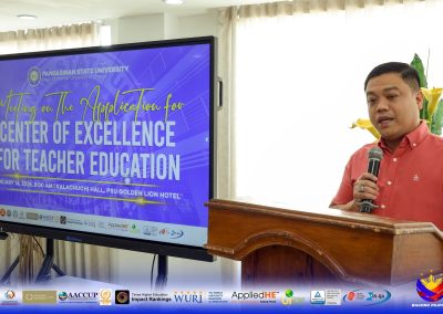 “We should be enthusiastic and positive thinkers in this quality assurance initiative because the indicators herein do not only speak to our application for COE but also guide appropriate actions for the continuous improvement of our teacher education programs, anchored on PSU’s Mission and Vision,” President Galas said.