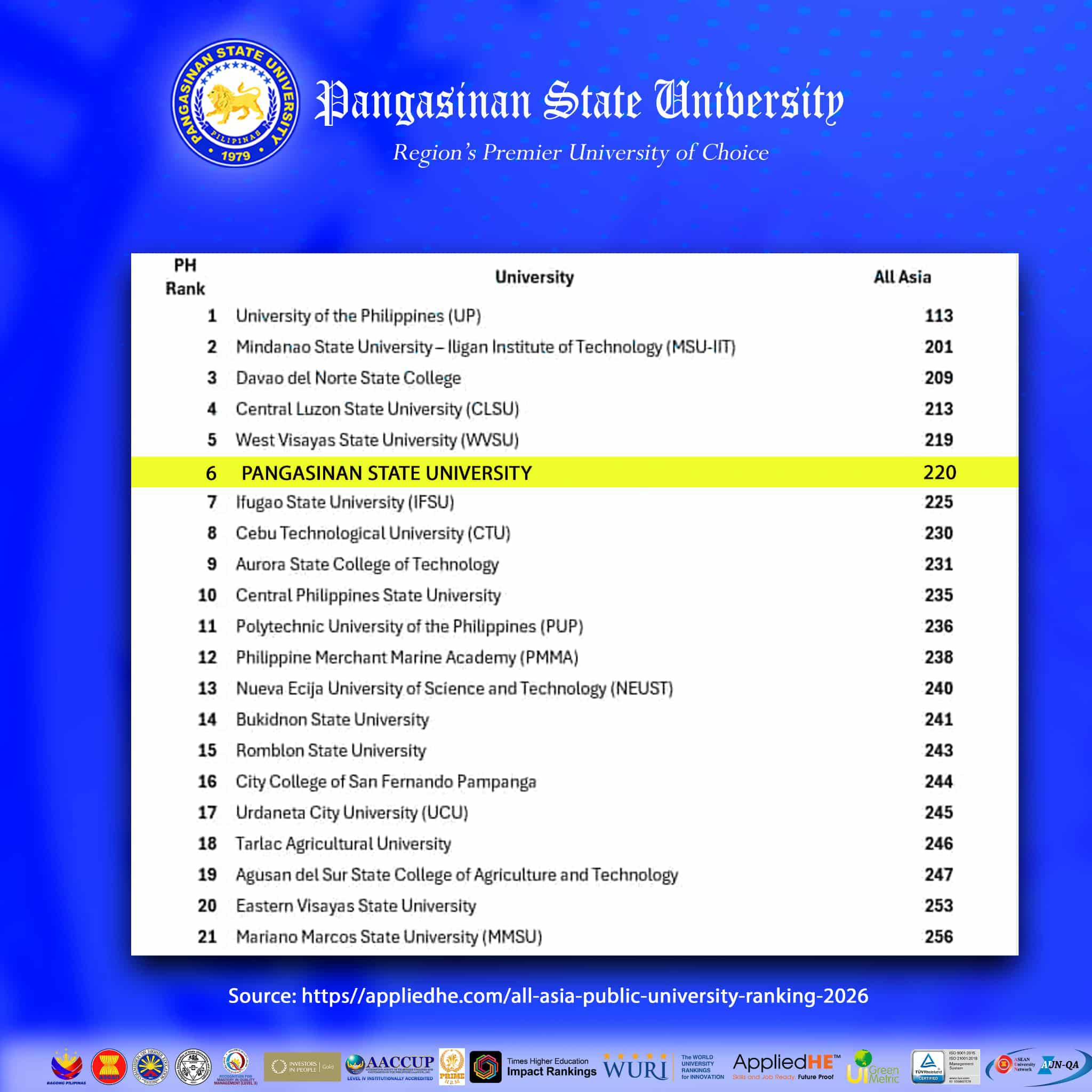 ๐Ÿ” ๐ฌ๐ฉ๐จ๐ญ ๐ข๐ง ๐ญ๐ก๐ž ๐๐ก๐ข๐ฅ๐ข๐ฉ๐ฉ๐ข๐ง๐ž๐ฌ as recognized by ๐€๐ฉ๐ฉ๐ฅ๐ข๐ž๐๐‡๐„ ๐๐ฎ๐›๐ฅ๐ข๐œ ๐š๐ง๐ ๐๐ซ๐ข๐ฏ๐š๐ญ๐ž ๐”๐ง๐ข๐ฏ๐ž๐ซ๐ฌ๐ข๐ญ๐ฒ ๐‘๐š๐ง๐ค๐ข๐ง๐  ๐Ÿ๐ŸŽ๐Ÿ๐Ÿ”.