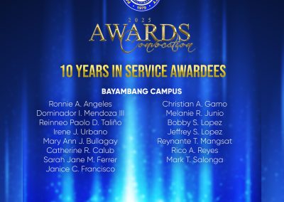 Held at the DTNB Convention Hall in Lingayen Campus, the event recognized its personnel who have been in government service, (regardless of the agency, not just at PSU) for 10 years, 15, 20, 25, 30, 35 and 40 years.