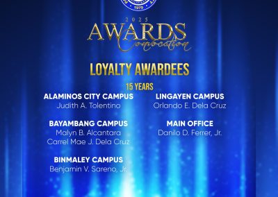ππ§π’π―ππ«π¬π’ππ² ππ«ππ¬π’πππ§π ππ«. ππ₯πππ«π π. πππ₯ππ¬ lauded all the Service and Loyalty awardees who have devoted their time, effort and knowledge in pursuing a career in public service.