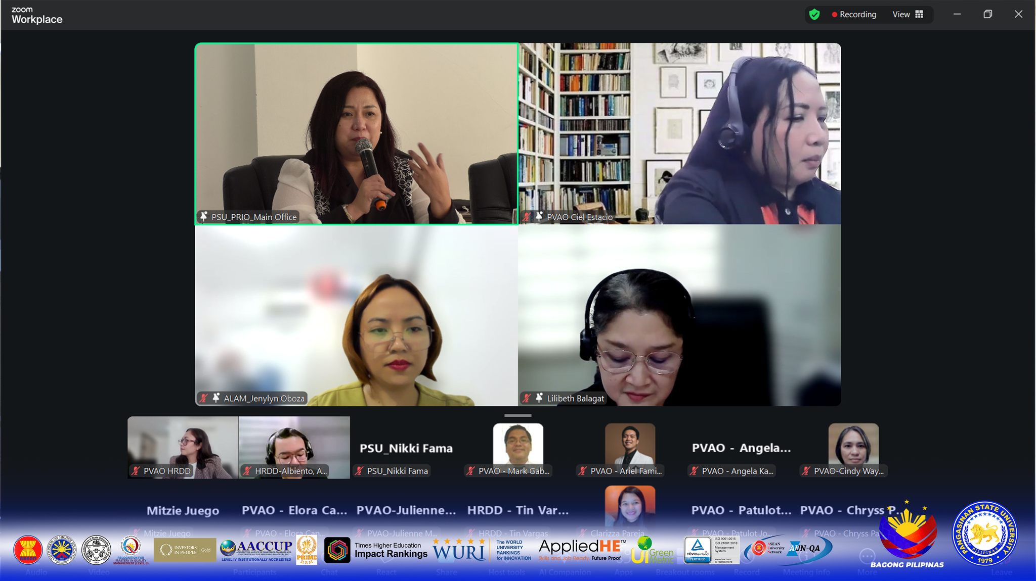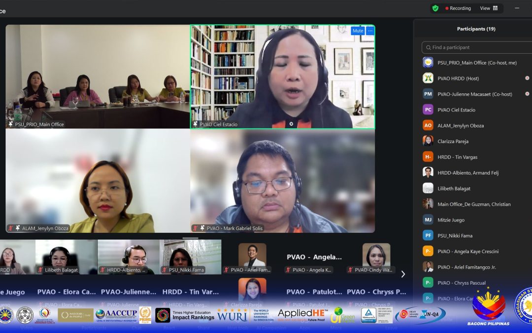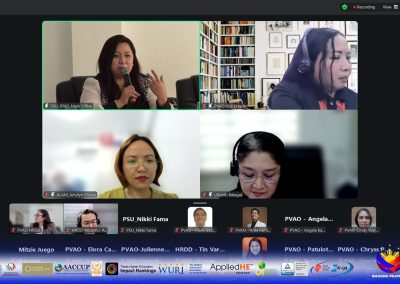 PSU IiP focals, Dr. Jenylyn V. Oboza, Ms. Leizel Del Castillo, and Ms. Cyfrel Ragusante led the presentation of best practice and in answering queries in the open forum. In the meeting, budget allocation, processes included, and technical working group composition, discussed.
