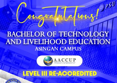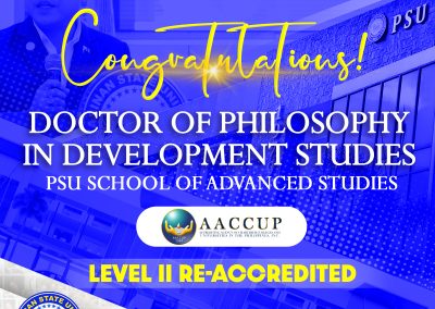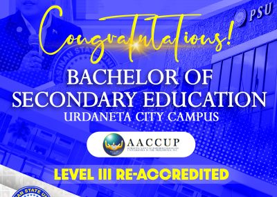 This milestone underscores PSUβs deliberate and sustained investment in cultivating academic programs that align with international benchmarks and respond to emerging educational demands. This achievement demonstrates the Universityβs commitment to quality assurance, curricular relevance, and continuous institutional improvement.