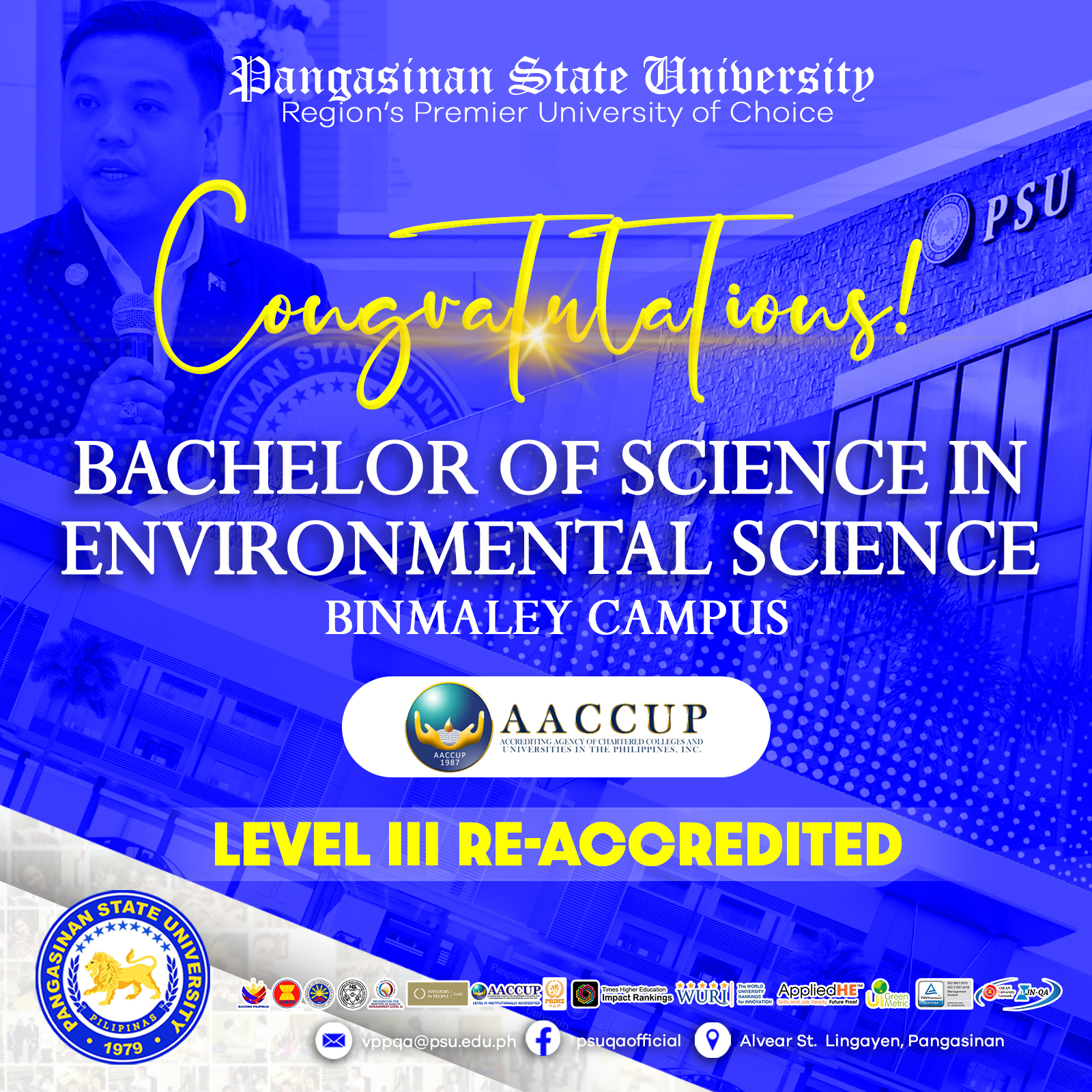 β’ Bachelor of Science in Environmental Science β Binmaley Campus