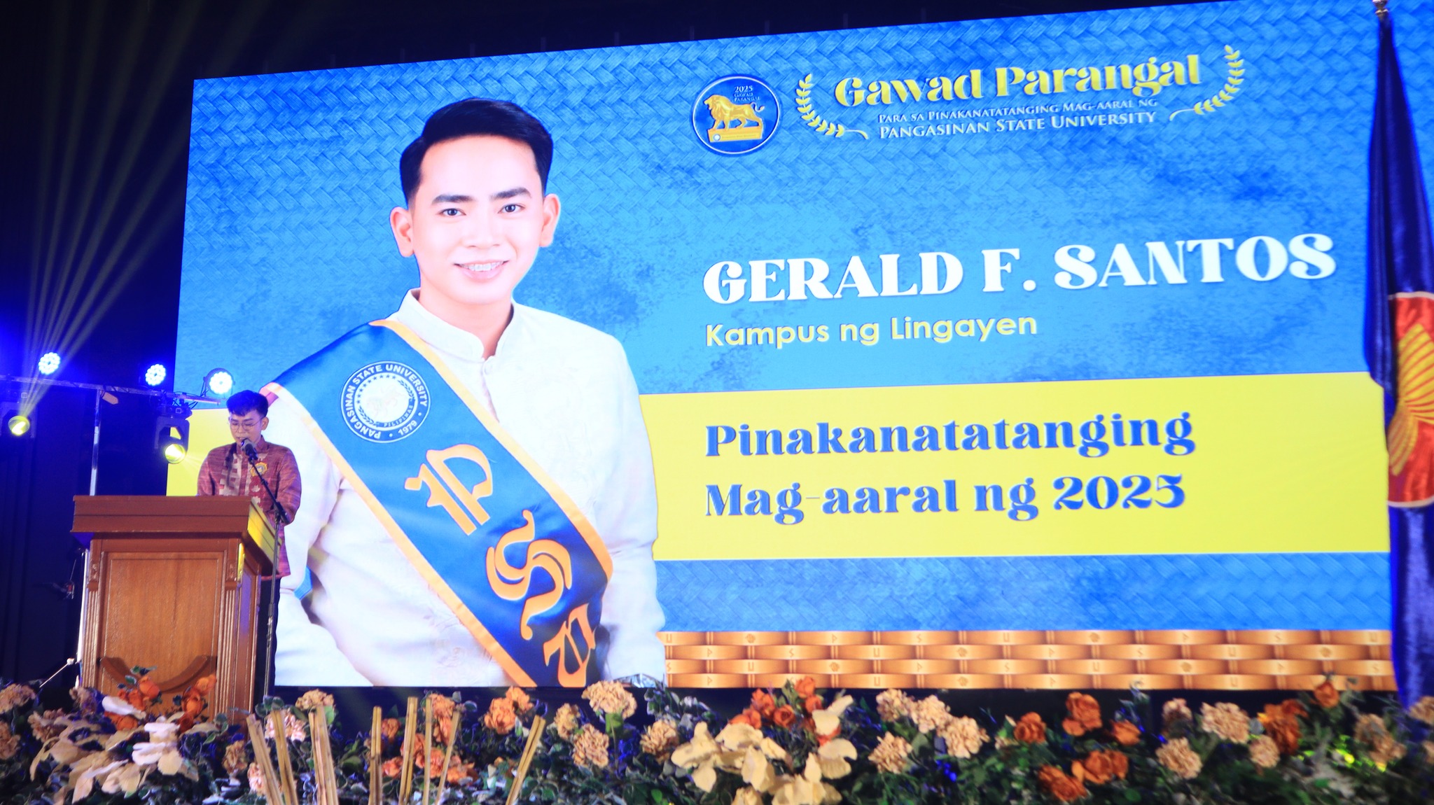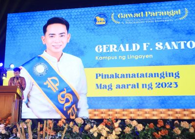 Celebrating excellence among the Pangasinan State University studentry, Gerald F. Santos of Lingayen Campus, was hailed as the recipient of this year’s prestigious award- the ‘Gawad Parangal para sa Pinakanatatanging Mag-aaral ng PSU’