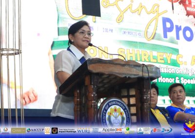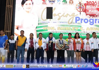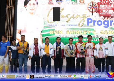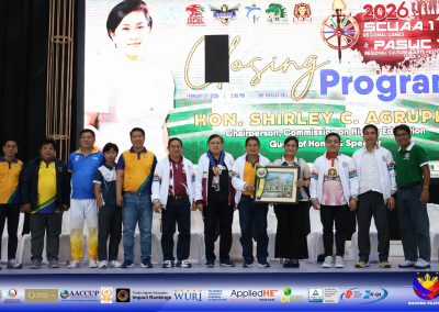 Dr. Rolando B. Navarro, Vice President for Academic Affairs of the University of Northern Philippines, delivered the Closing Remarks, challenging all participants to carry forward the values learned through competition by reminding them that while medals shine brightly, the character built, friendships forged, and memories created will last a lifetime, and that as they return to their respective institutions, they serve as ambassadors of excellence, unity, and sportsmanship.
