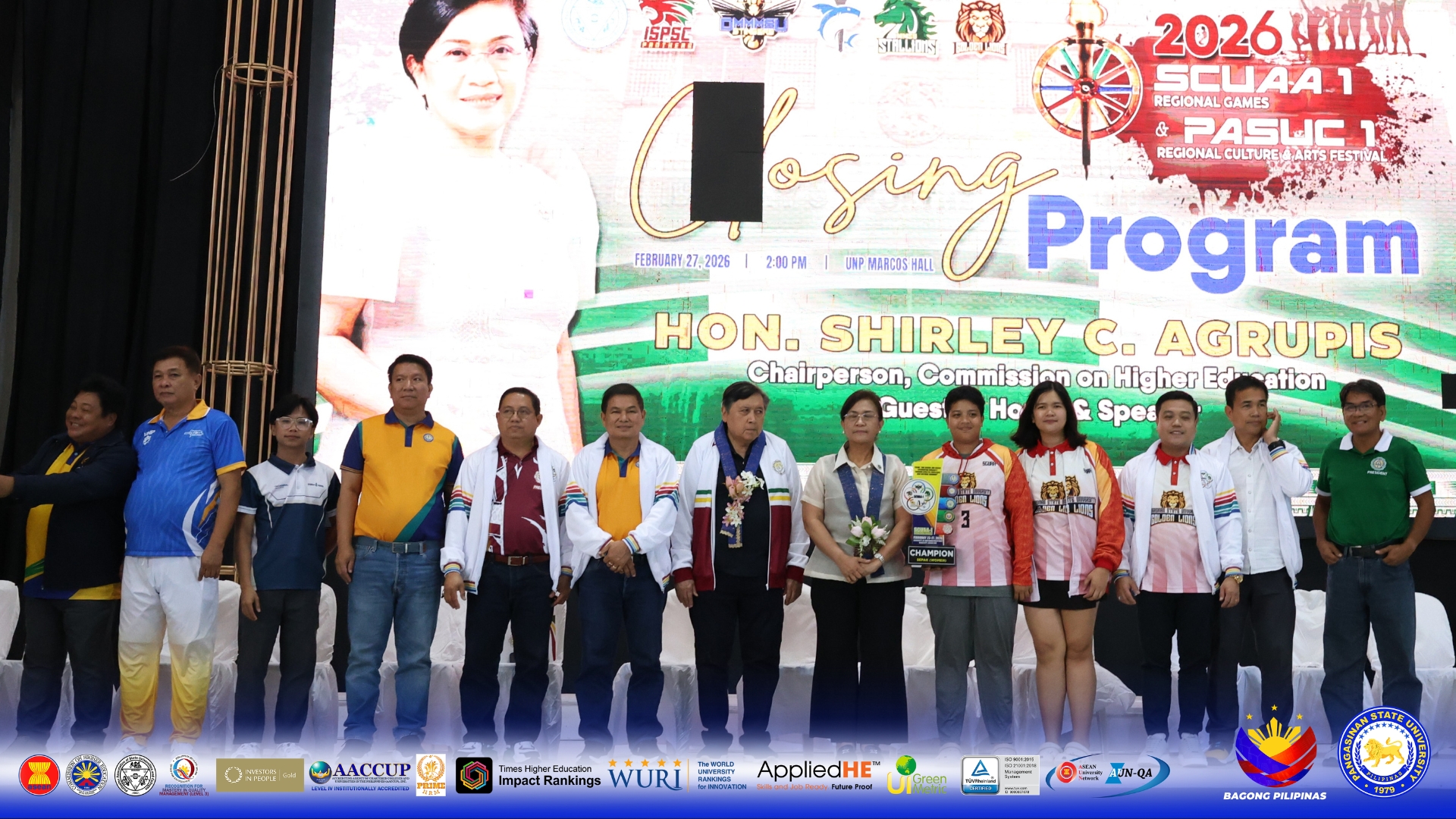 Cheers, applause and heartfelt farewells echoed through the Marcos Hall of the University of Northern Philippines (UNP) in Vigan City as the State Colleges and Universities Athletic Association (SCUAA-1) Regional Games and Philippine Association of State Universities and Colleges (PASUC-1) Culture & Arts Festival drew to a triumphant close on February 27, 2026.