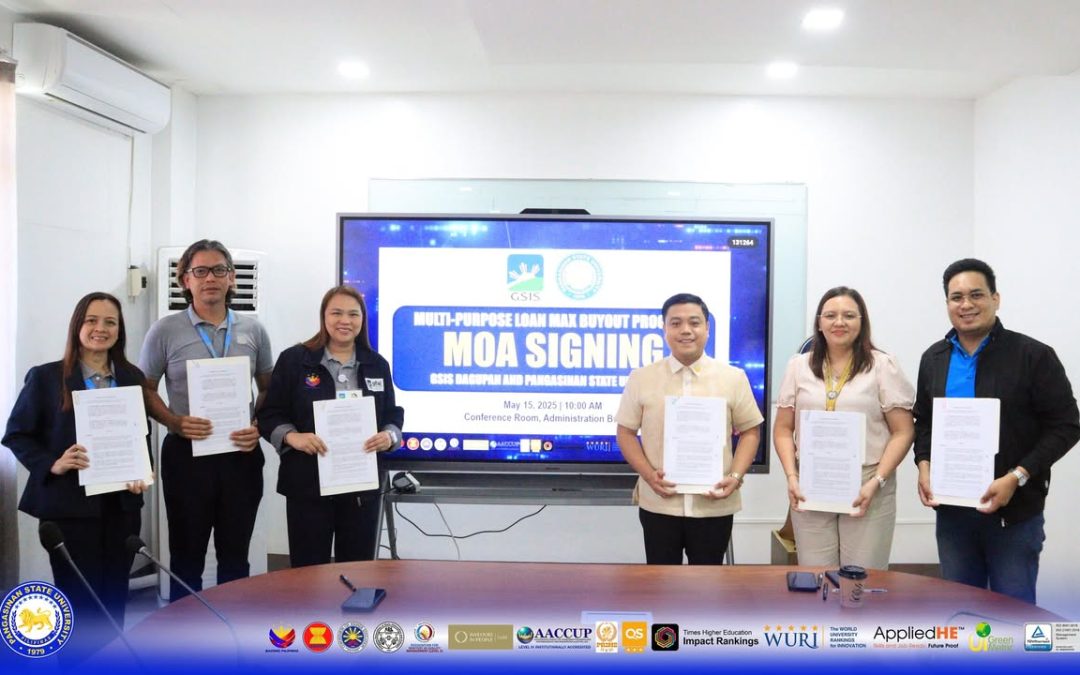The πππ§π ππ¬π’π§ππ§ πππππ ππ§π’π―ππ«π¬π’ππ² ππ«ππ¬π’πππ§π, ππ«. ππ₯πππ«π π. πππ₯ππ¬, signed a Memorandum of Agreement with the Government Service Insurance System (GSIS) Dagupan branch officials venturing on MPL Max (Loan BuyOut), GSIS’ new program.