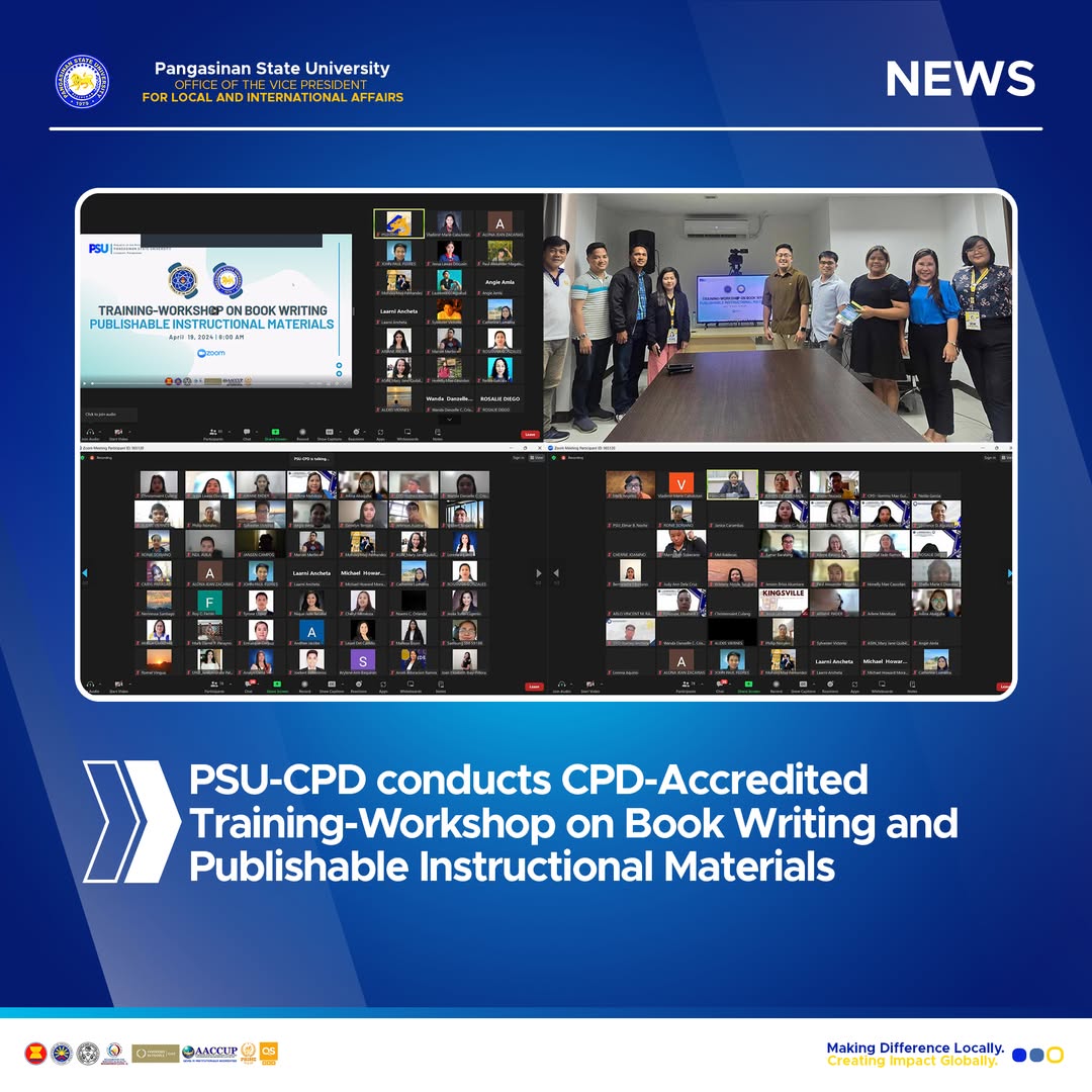 The Training-Workshop on Book Writing and Publishable Instructional Materials with a theme, “Capacitating Prolific Budding Authors and Writers toward Revitalized Education,” was successfully conducted on April 19, 2024, at the Pangasinan State University Golden Lion Hotel, Lingayen, Pangasinan.